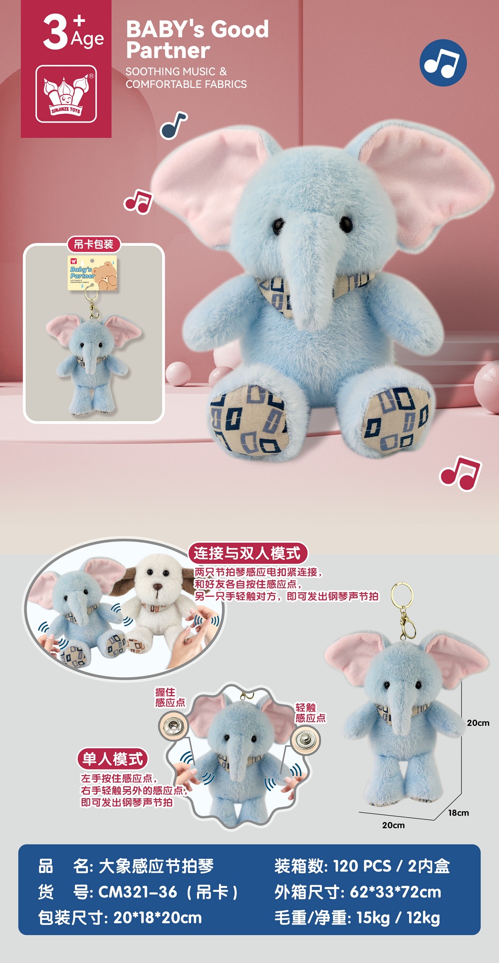CM321-36 ELEPHANT RHYTHM-SENSING MUSICAL TOY, TRENDY CULTURAL CREATIVE PLUSH BABY SOOTHER, BACKPACK CHARM, KEYCHAIN PLUSH DOLL