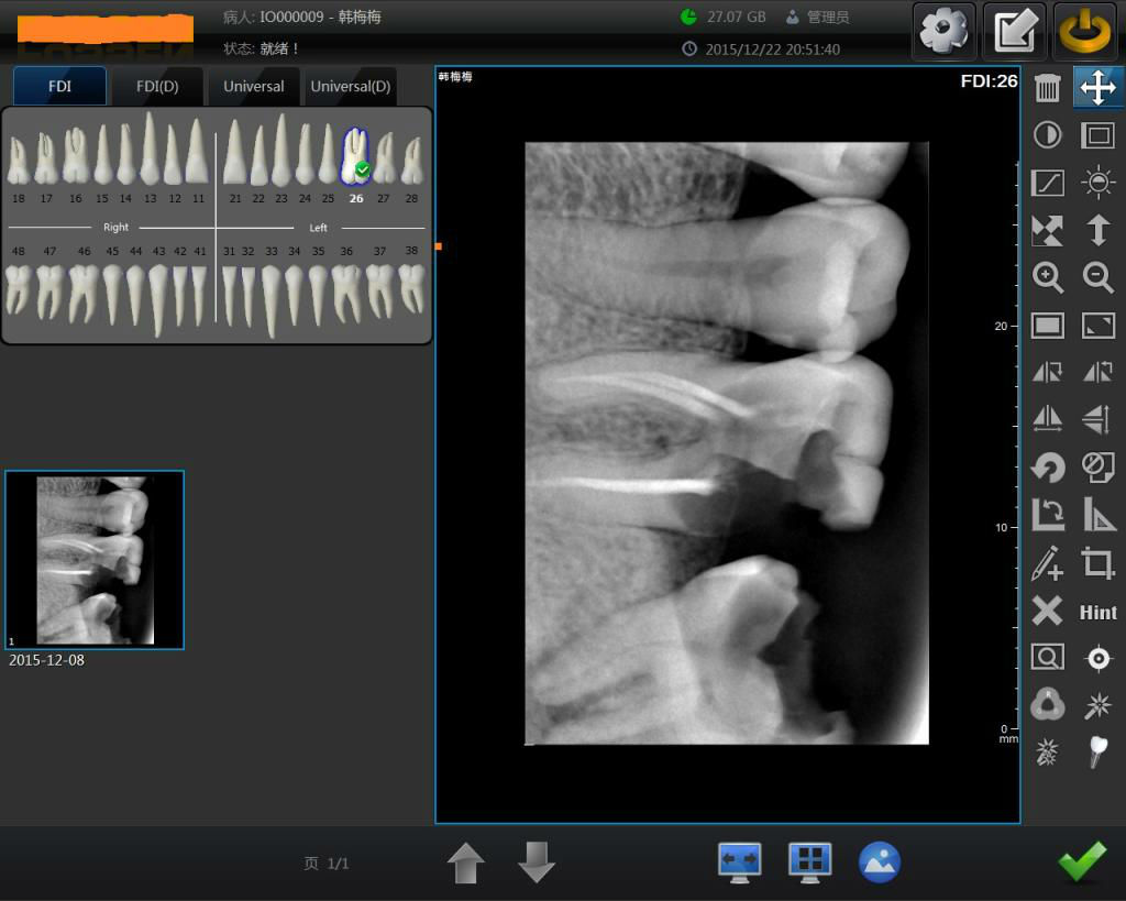 Software includes 3 parts: X-ray image acquisition, patient record and DICOM data exchange tool