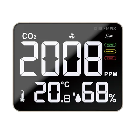 - CO2 level indicator: good (400~700 PPM)/normal(700~1000 PPM)/poor(1000~5000 PPM)