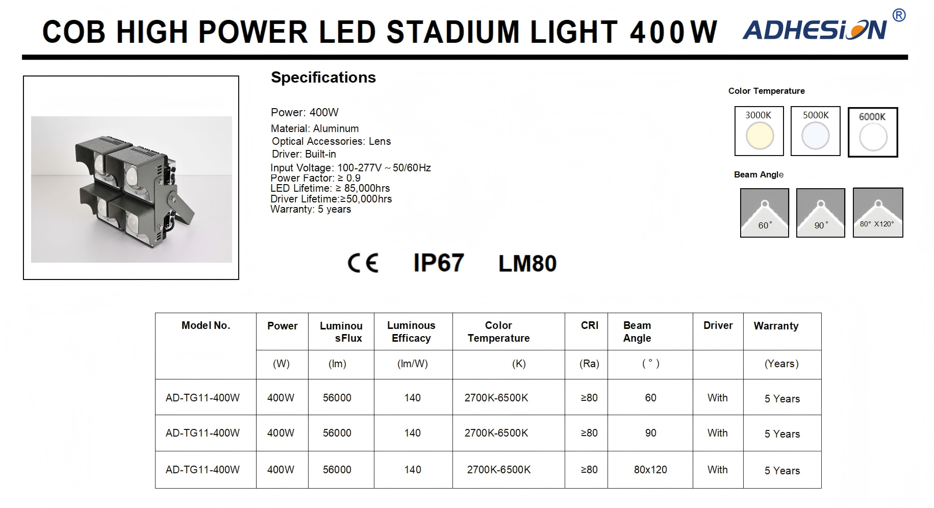 3.Offers outstanding light efficiency with a whole lamp efficiency of 140-150lm/W, making it a suitable replacement for standard LED floodlights of 1500W in the market while providing the same illuminance level.