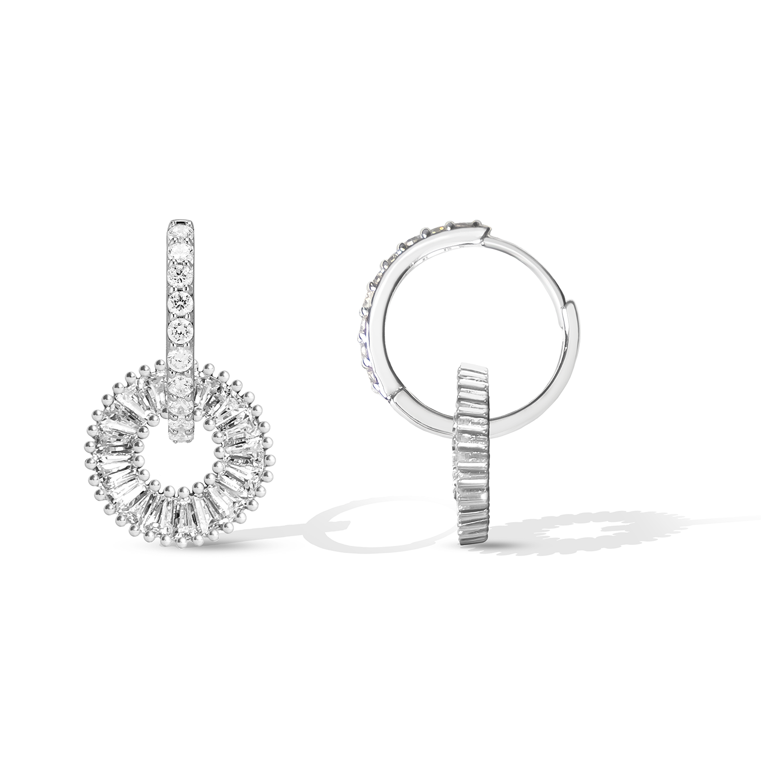 COBEN CZ Sunburst Circle Earrings - Silver/ rhodium plating