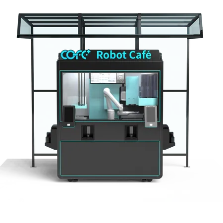 The COFE+ Coffee Robot Kiosk (Outdoor) is an advanced automated coffee solution measuring 1800x1300x2180mm (800kg) that delivers professional coffee service 24/7. Featuring dual bean hoppers (1.2-2.5kg each), it produces 300+ cups per refill in just 50 seconds per cup, offering over 70 customizable drinks with adjustable sugar, 2 milk types, and 6 syrups.