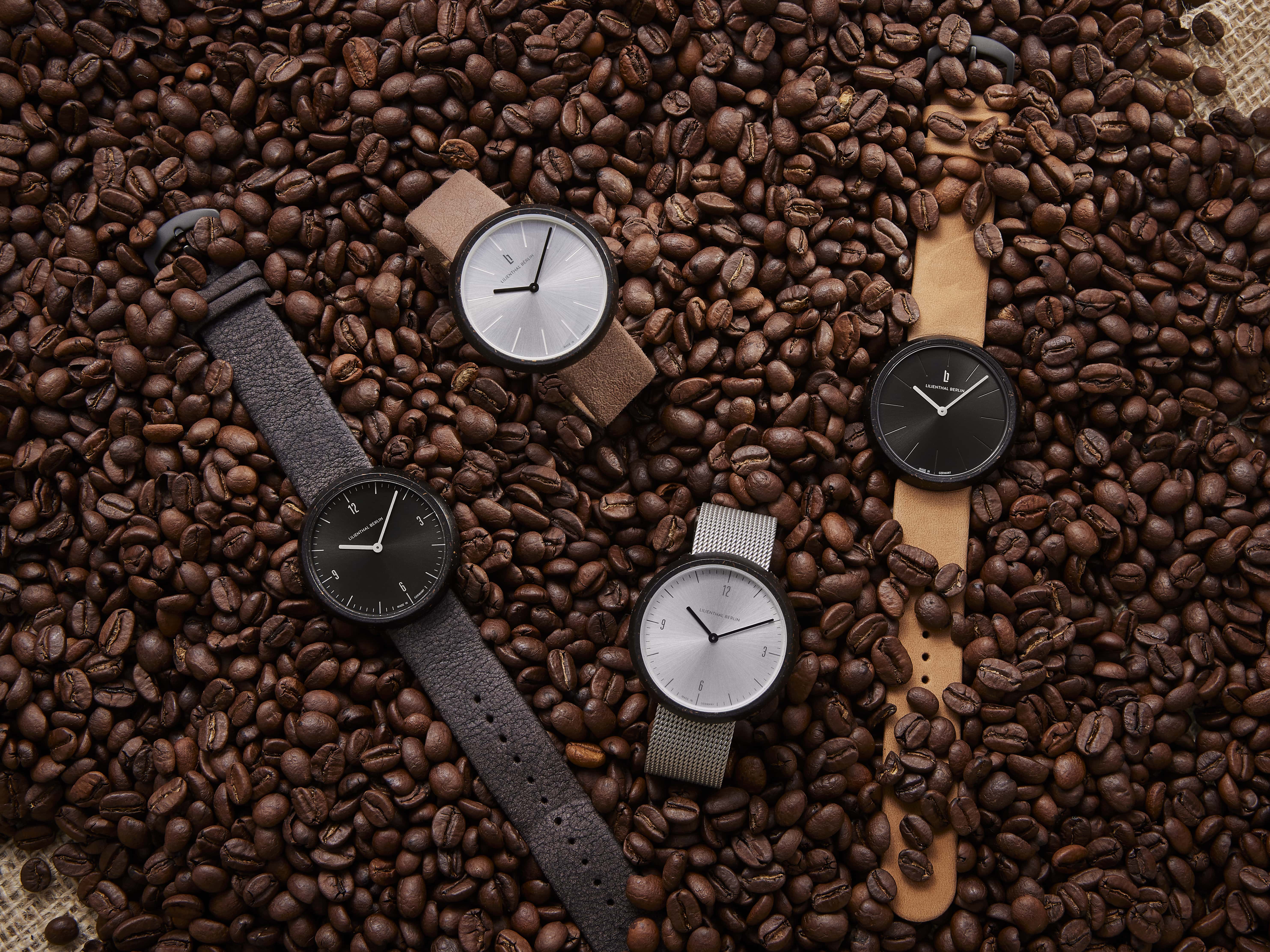We present the world's first watch made from recycled coffee. When it comes to sustainable living, the Coffee Watch is a true innovation, featuring a case made of used grounds from Berlin cafés and roasting houses, transformed into an extremely durable material through a complex upcycling process. The shapes, colors, texture, and even a subtle aroma reveal what the watch is made of – and it's completely carbon-neutral to boot. All these things make it a genuinely loving tribute to the greatest of all hot drinks!