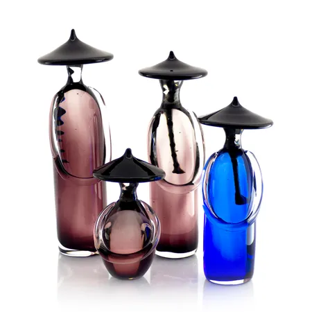 Blue, Black (L 9 × W 10 × H 19 cm), Purple, Clear, Black (L 11 × W 11 × H 34 cm), Purple, Clear, Black (L 10 × W 10 × H 28 cm), Purple, Clear, Black (L 9 × W 9 × H 17 cm)