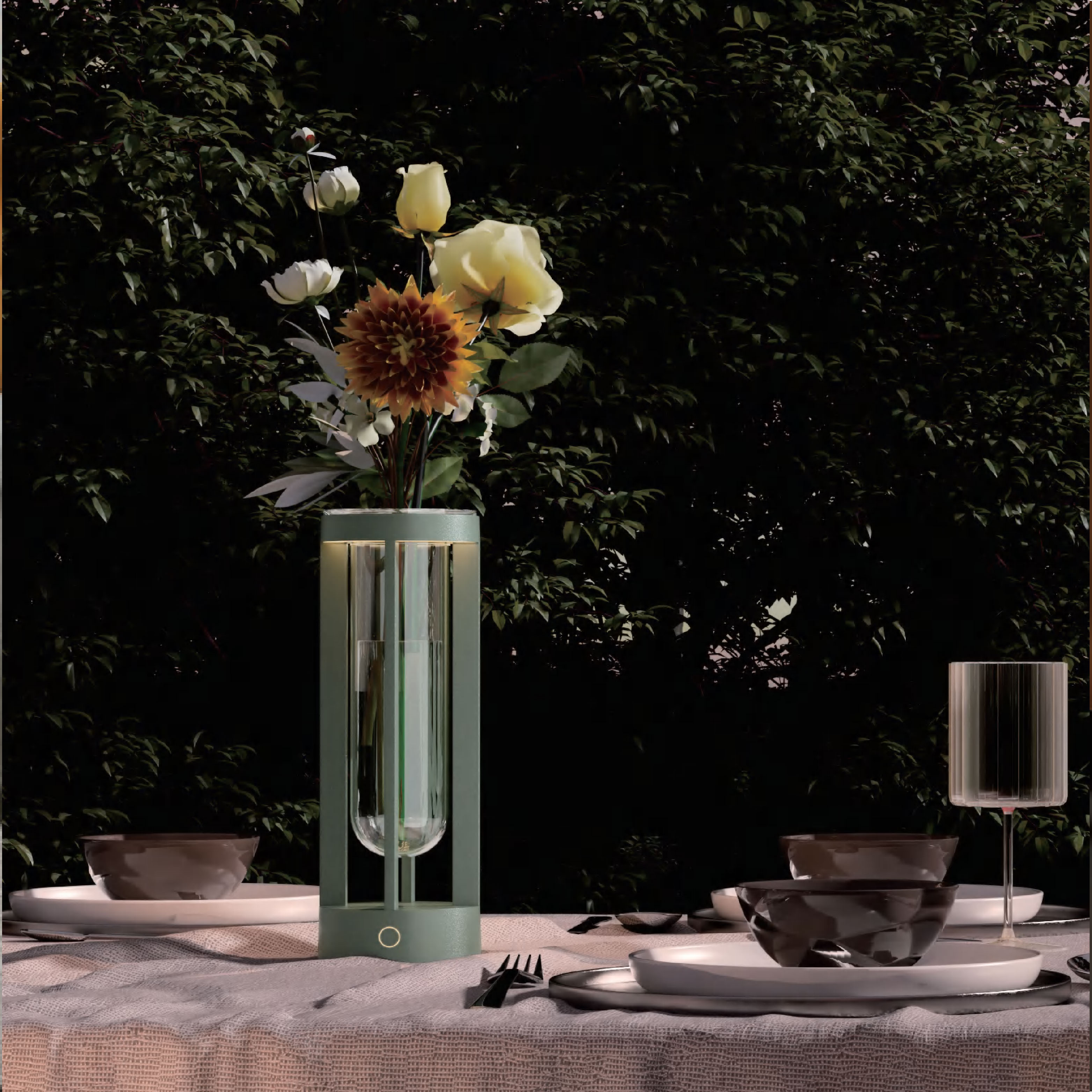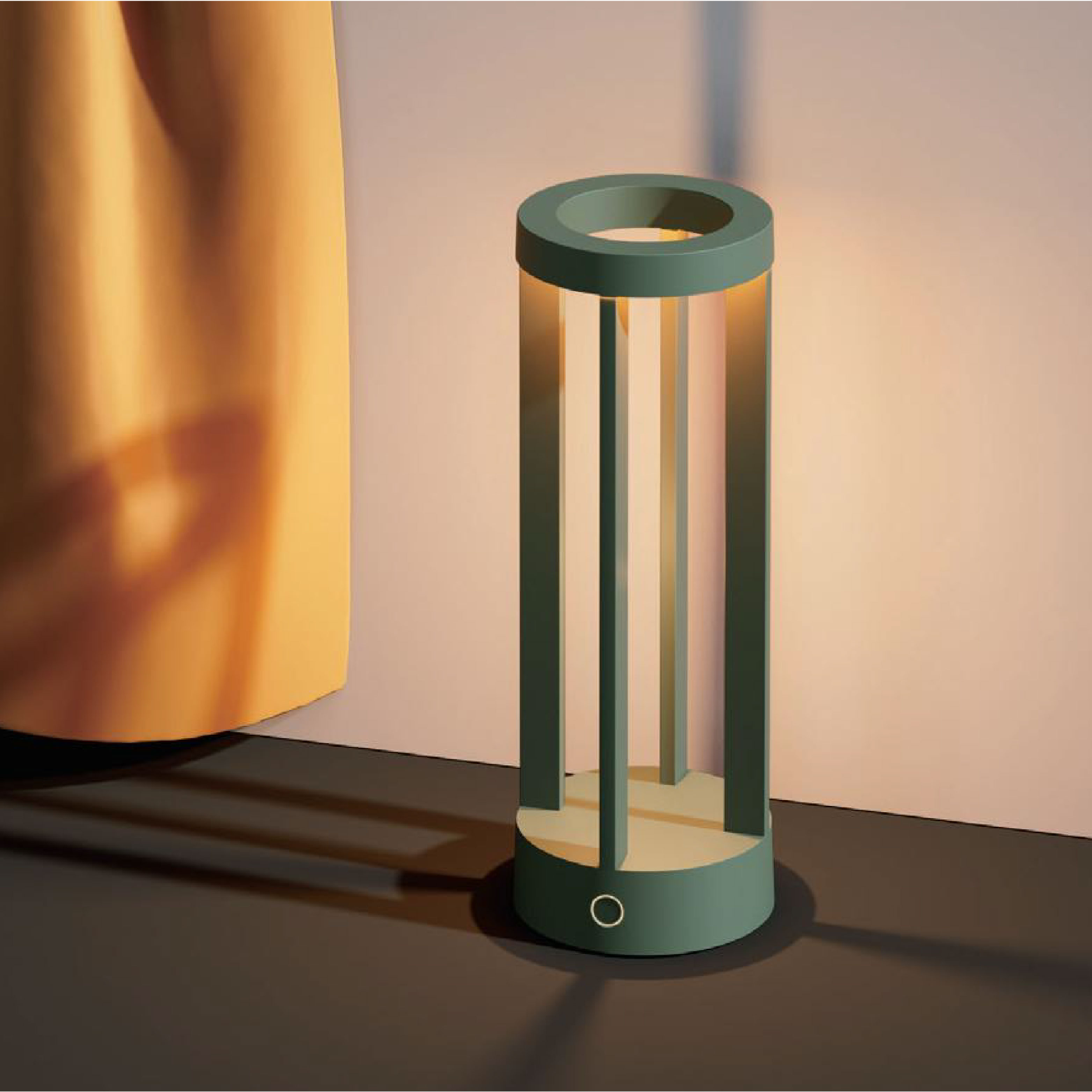 Rechargeable table lamp with a contact charging base.