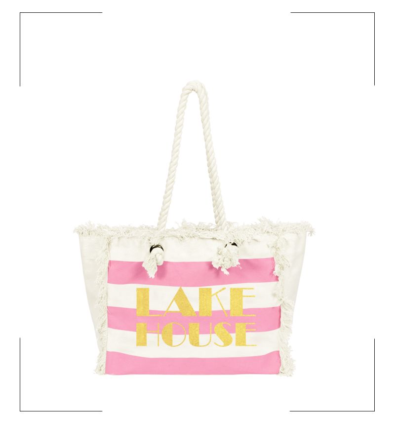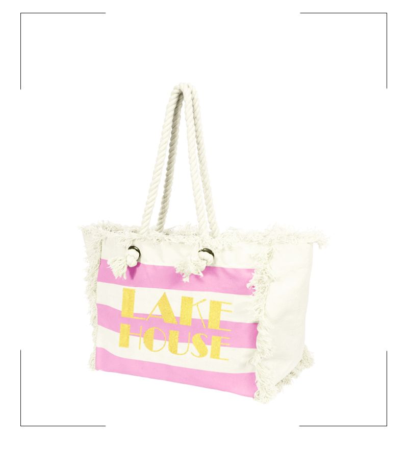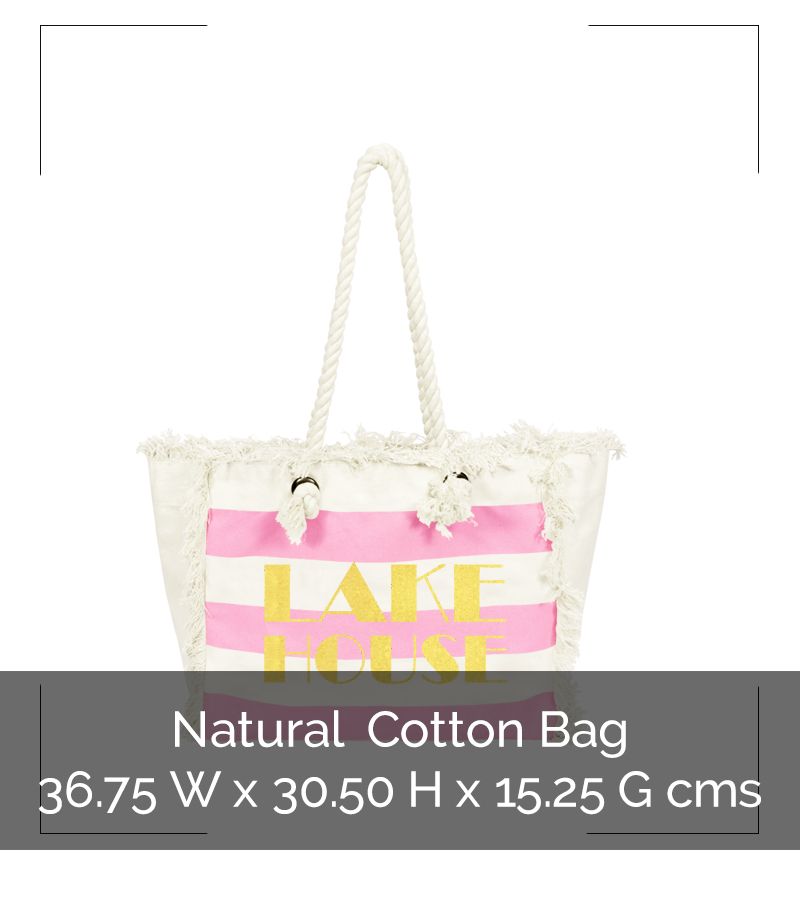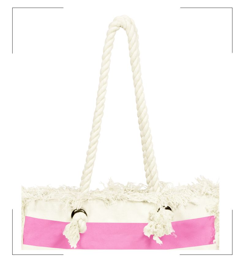 12 Oz Natural Cotton Bag with Pink & Golden Print & Chain Rope Handles & Cotton Stitch Cover & Magnet closure & Side Fringe