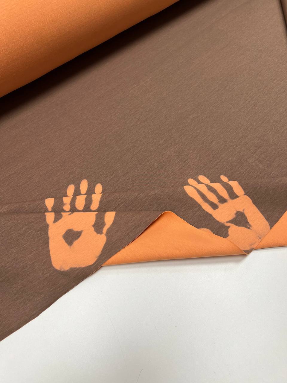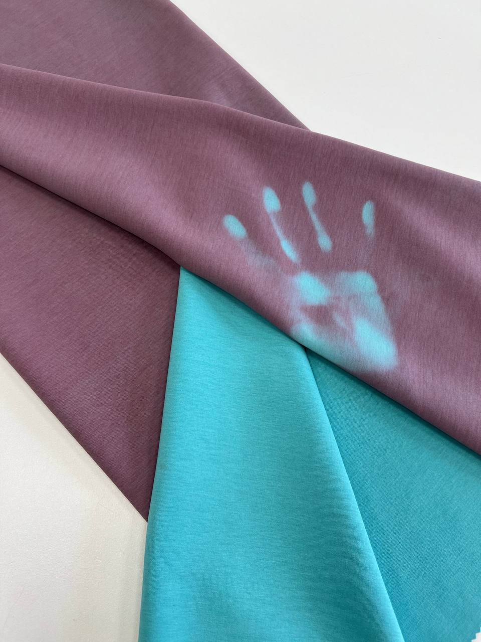 Unique, innovative premium fabric. Perfectly matched fabric composition. The material is very soft, does not wrinkle, does not pilling, does not stretch, perfectly holds its shape. Cotton knitted fabric is combined with thermochromic pigment, due to which it changes color from heat. Color change occurs at high temperature, may depend on external factors, to start the material to work, we recommend to iron the material from the wrong side. It does not require cashcord (cuffs and collar are made of the same material);