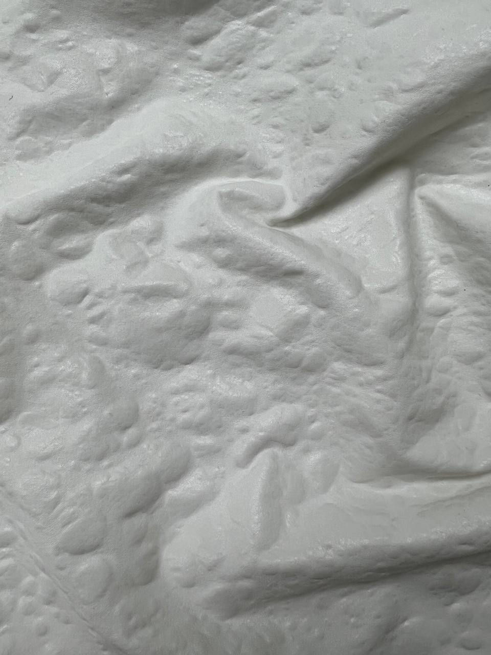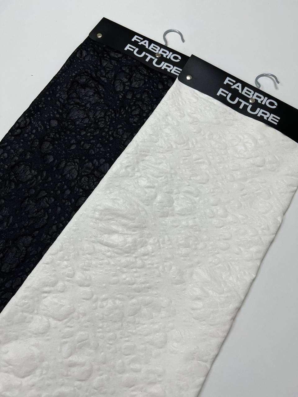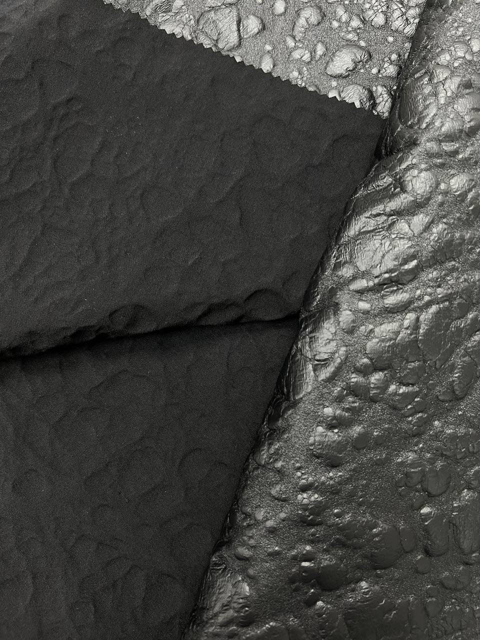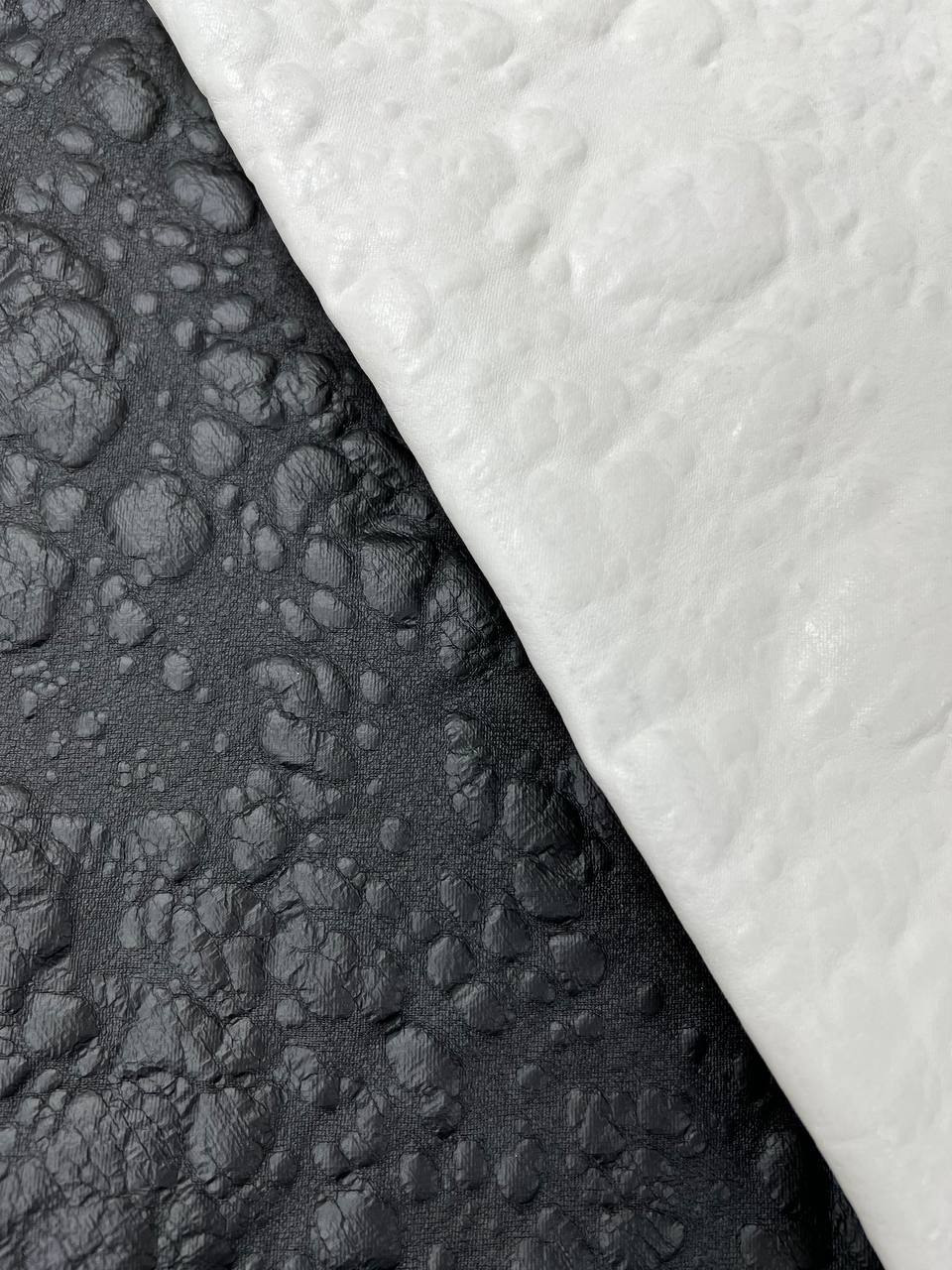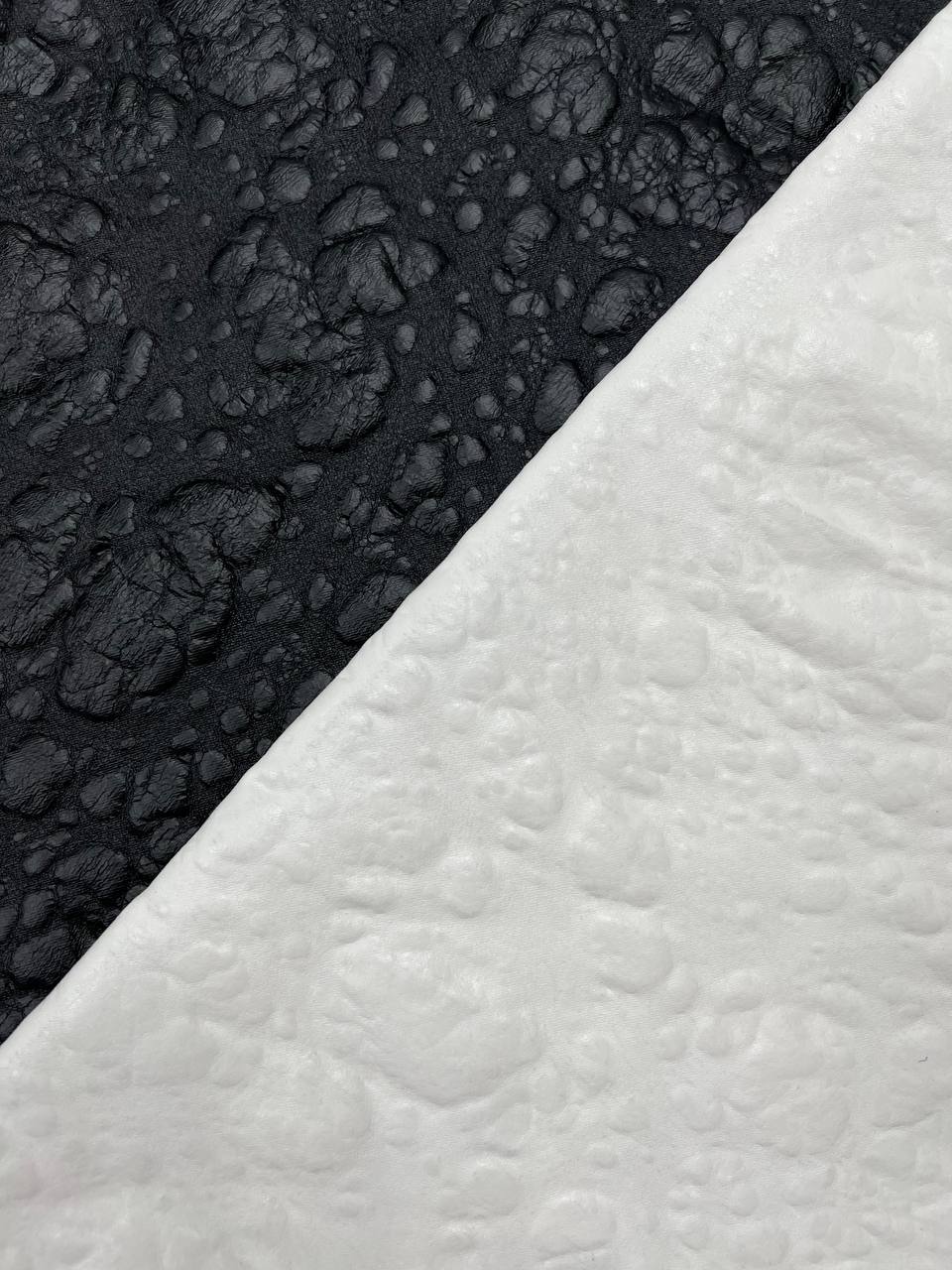 High-quality and textured medium density black and white cotton with PU coating. The material is waterproof, pleasant to the touch and soft. The texture of the material is reminiscent of moon craters;