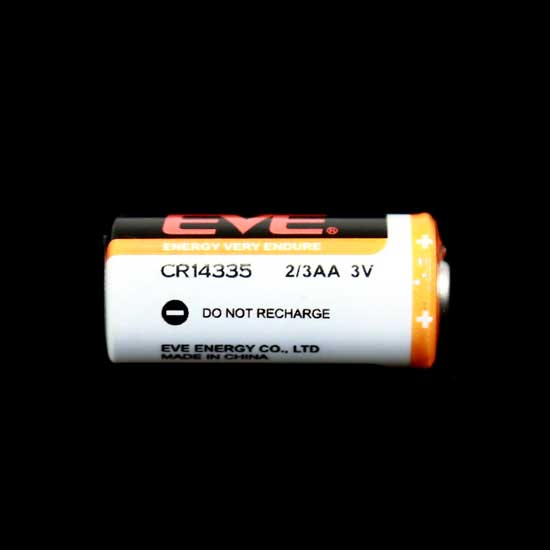 Displayed is a CR14335 battery enclosed in a stylish white, orange, black and pink covering. It comes with a 3V design and guarantees low self-discharge. This super reliable battery is widely adopted.