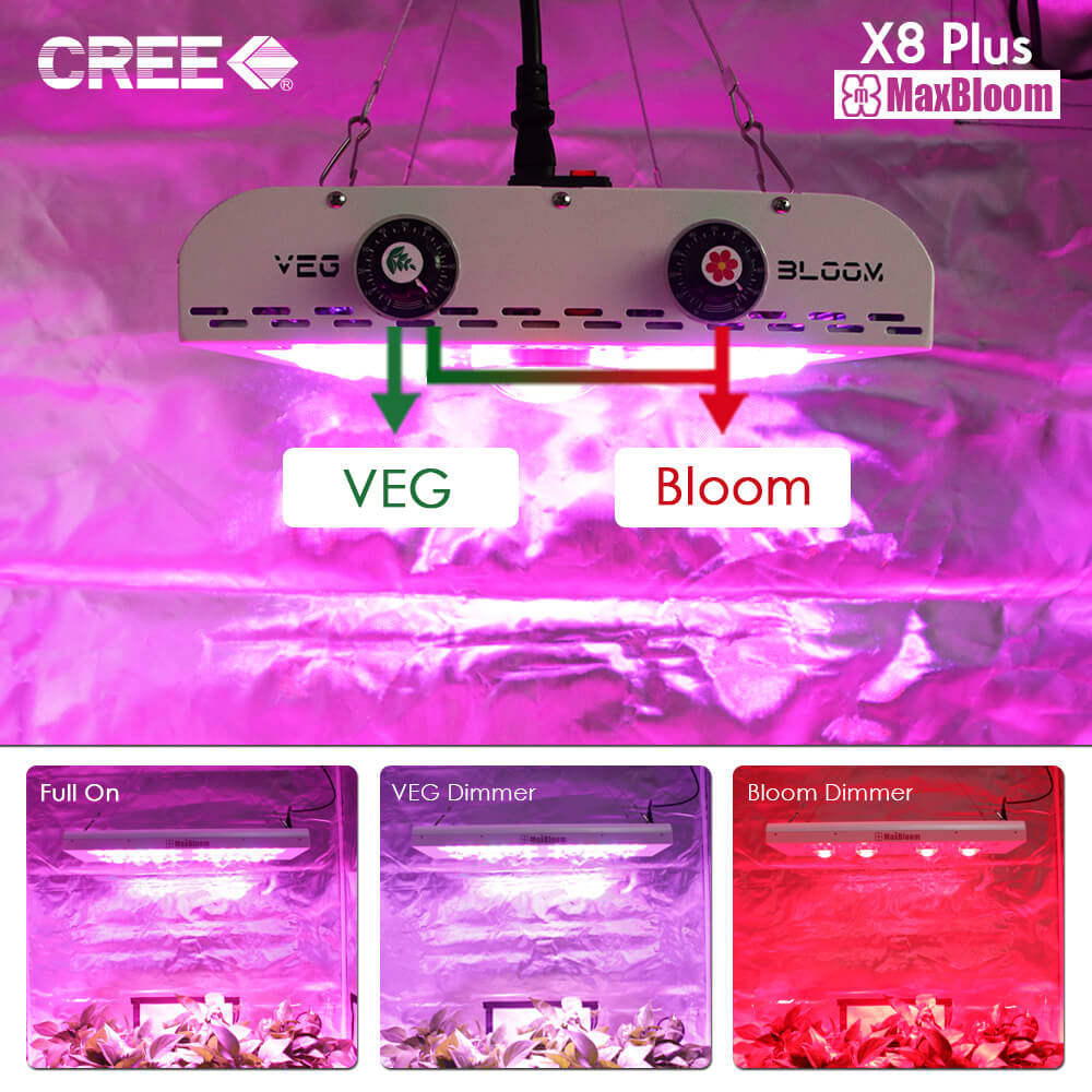 Led grow light dimmable 0-100% intensity control for VEG & BLOOM will help you use the light so easy for different growing stage, light coming with hanging kits for easy installation.