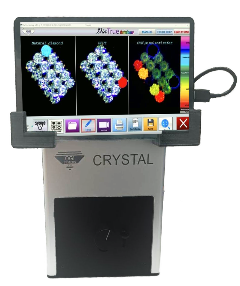 DiaTrue CRYSTAL with "automatic detect" is the fastest CVD/HPHT scanner in the market. In a few seconds you get clear, accurate results utilizing the latest technology. It is a light weight scanner in a carry case that is easy to use. It's made with a large scan area specifically designed for extremely small melee diamonds from 0.02 mm to very large diamonds in any shape. And has a special tray to adjust the ring's focus. You can scan watches, jewelry and other luxury items. Crystal is designed to detect synthetic diamonds grown by HPHT or CVD. It can detect Diamond simulants like CZ's and Moissanite as well as synthetic diamond coated Moissanite and CZ.