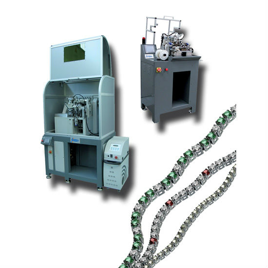 • Production line consisting of chain making machine and automatic stone setting machine for making Tennis chain sized from 1mm to 4.2mm