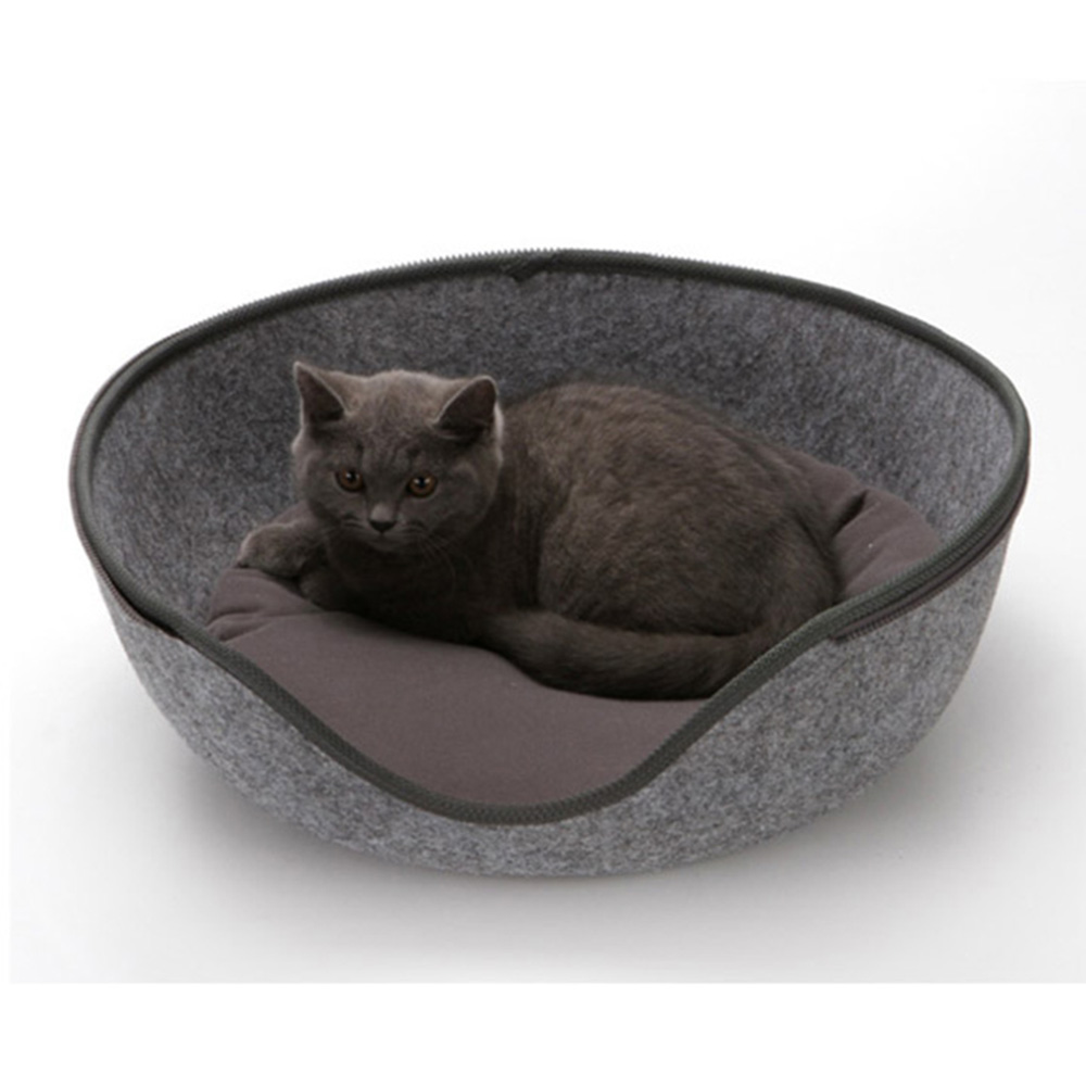 The cat cubby is made from P.E.T fiber felt that helps with sound absorption and heat insulation to encourage a quiet, cozy night's rest.