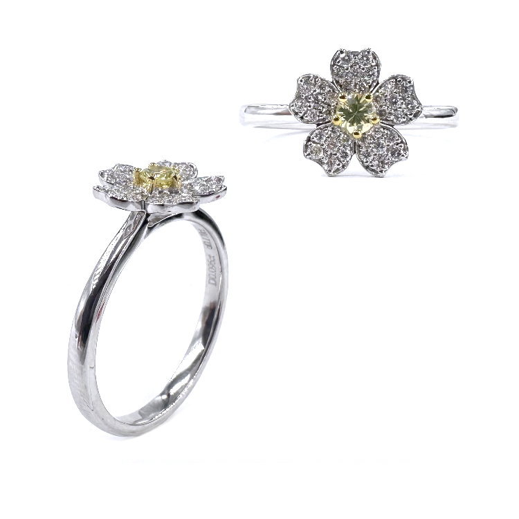18K GOLD DIAMOND RING IN FLORAL DESIGN (MATCHING EARRINGS)