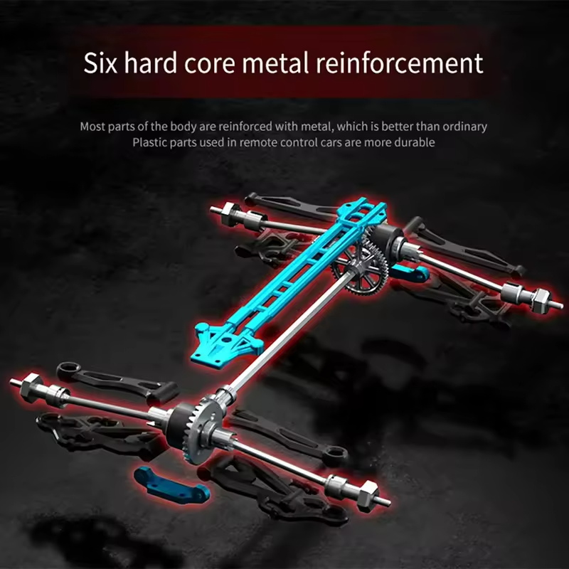 | Product parameter configuration | 1, the use of simulation structure design, with real car control feeling, to achieve full proportion of stepleless transmission, high speed driving, sharp acceleration, deceleration, braking, reverse, left turn, right turn; 2, applicable site: flat, sand, mud, grass. 3, four-wheel drive: front and rear vertical spring shock absorption, double fork arm independent suspension system; 4, 2.4G full proportional synchronous remote control system. Full proportional throttle/steering; 5, metal differential, metal differential cup, powder planetary gear, powder drive gear, powder main gear; 6, metal CVD front drive shaft, metal back dog bone, metal wheel cup; 7. Three-line 17G digital steering gear; 8, 7.4V, 18650-1500mAh Li-ion battery (T plug), discharge rate 15C; 9, added remote control panel function: rudder size adjustment; 10, the whole car adopts 16 ball bearings; 11, metal second floor, metal front and rear arm code, metal drive shaft; 12, the car shell adopts high toughness explosion-proof PVC car shell; 13, equipped with LED headlight; (Three-gear mode: constant light, slow flash, flash); 14, equipped with head wheel; 15, simulation big foot tire, strong grip; | ||