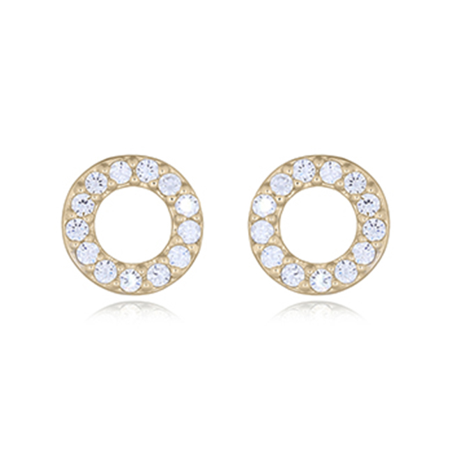CZ Donut Ring in Yellow Gold Stud Silver Earrings