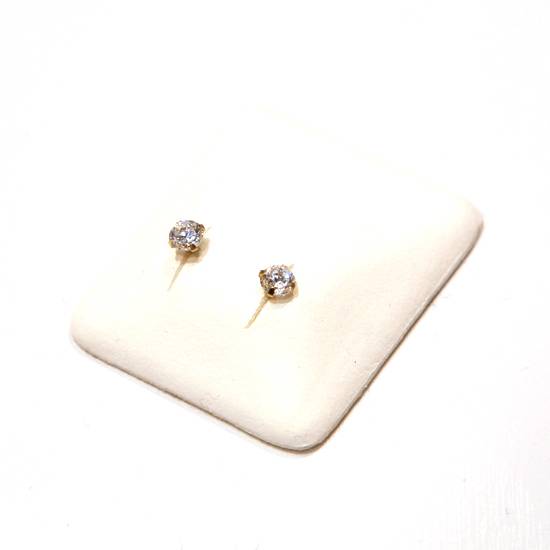This is a pair of cubic zirconia earrings set in 18k yellow gold. The earrings feature two round machine cut CZ stones. The earrings come with studs.