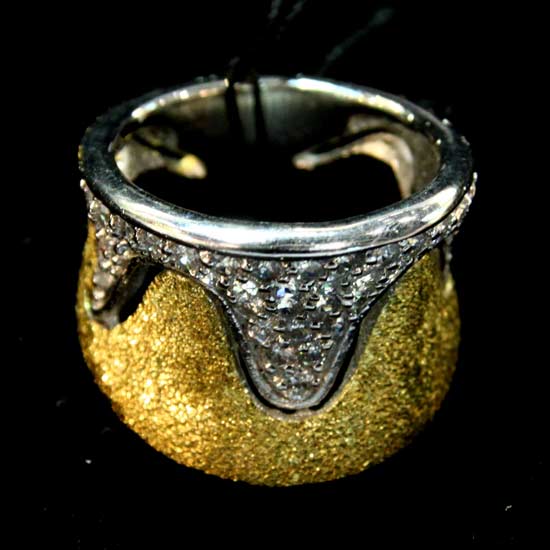 Shown here is a CZ ring with delicate and excellent craftsmanship. The CZ stones are well decorated around the ring, adding an artistic flavor to the whole piece. This gold-plated ring offers sophistication to your casual outfits.