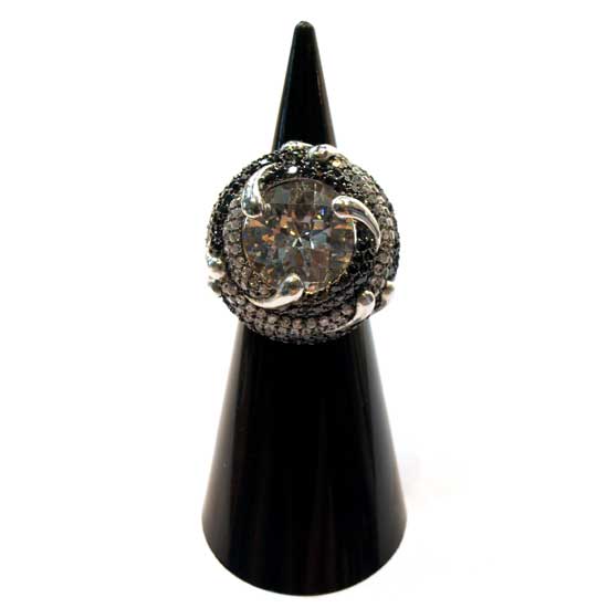 Look stylish with the featured CZ ring. The centerpiece is a round CZ stone with embellishing stones like water drops. The ring is adorned by a sparkling CZ stone which is eye-catching.