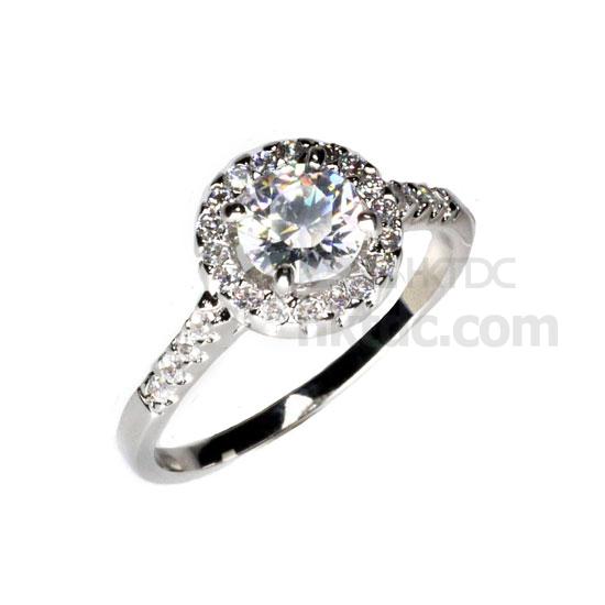 This is a costume ring that comes with a large CZ stone. In a solitaire style, this ring is adorned with multiple sparkling side stones for an extra shine. This CZ ring is mounted on silver for durability.