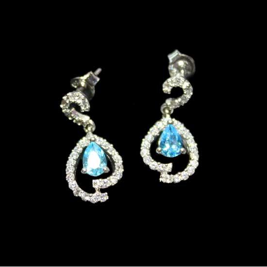 These pretty earrings spotlight twinkling blue CZ stones in a pear-shaped design. They are adorned with micro-pave white stones for added appeal. The earrings are secured with butterfly clasps.
