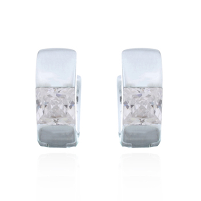 CZ White Square Huggie Hoop 925 Earrings In Silver Plated