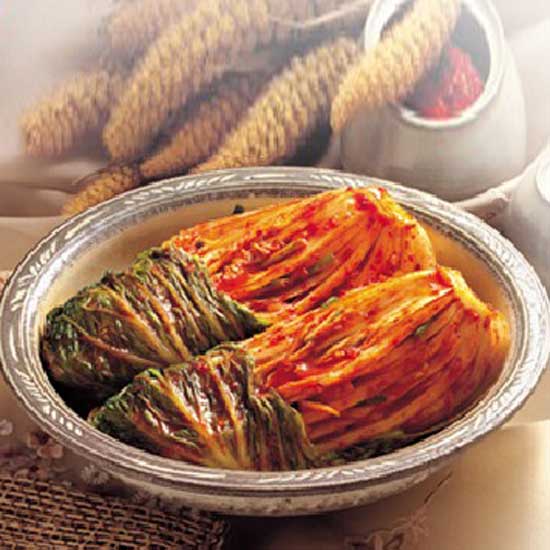 The cabbage kimchi flaunts a crispy texture and a fresh taste. It is well pickled with natural seasonings. Prepare Korean dishes with this traditional cabbage kimchi.