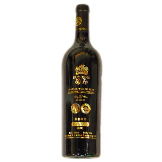 Shown here is a bottle of Cabernet Sauvignon produced in China. This wine features rich fruit flavors with an elegant aroma. This full, well-structured wine is a pleasant choice for different occasions.
