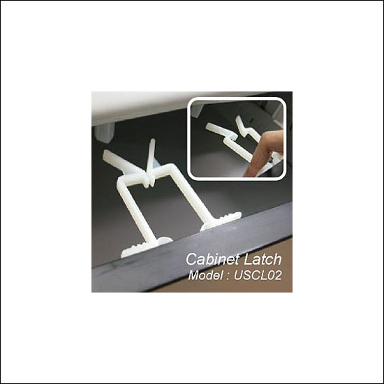 Ordinary latches can be easily pushed down and defeated by childern, The Cabinet Latch design is totally different. It latches twise for extra security, and mounts out of the reach of little hands. It easily latches and releses the cabinet, like a clothes