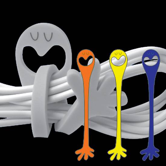 This is a cable hugger which has a large-mouth face and a hand shape at the two ends respectively. The hand end can be rolled through the mouth end to fasten the lengthy cables.