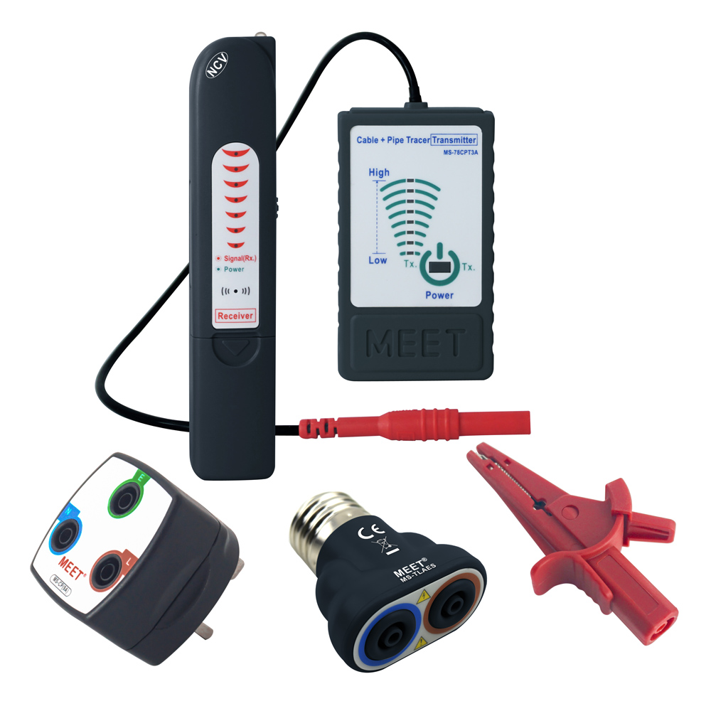 Complete Tracer Kit Set: Transmitter & Receiver with Accesories : Croc Clip, 13A Socket Adaptor, E27 ES Light Fitting Test Adaptor, all packed in Durable & Portable Carrying bag.