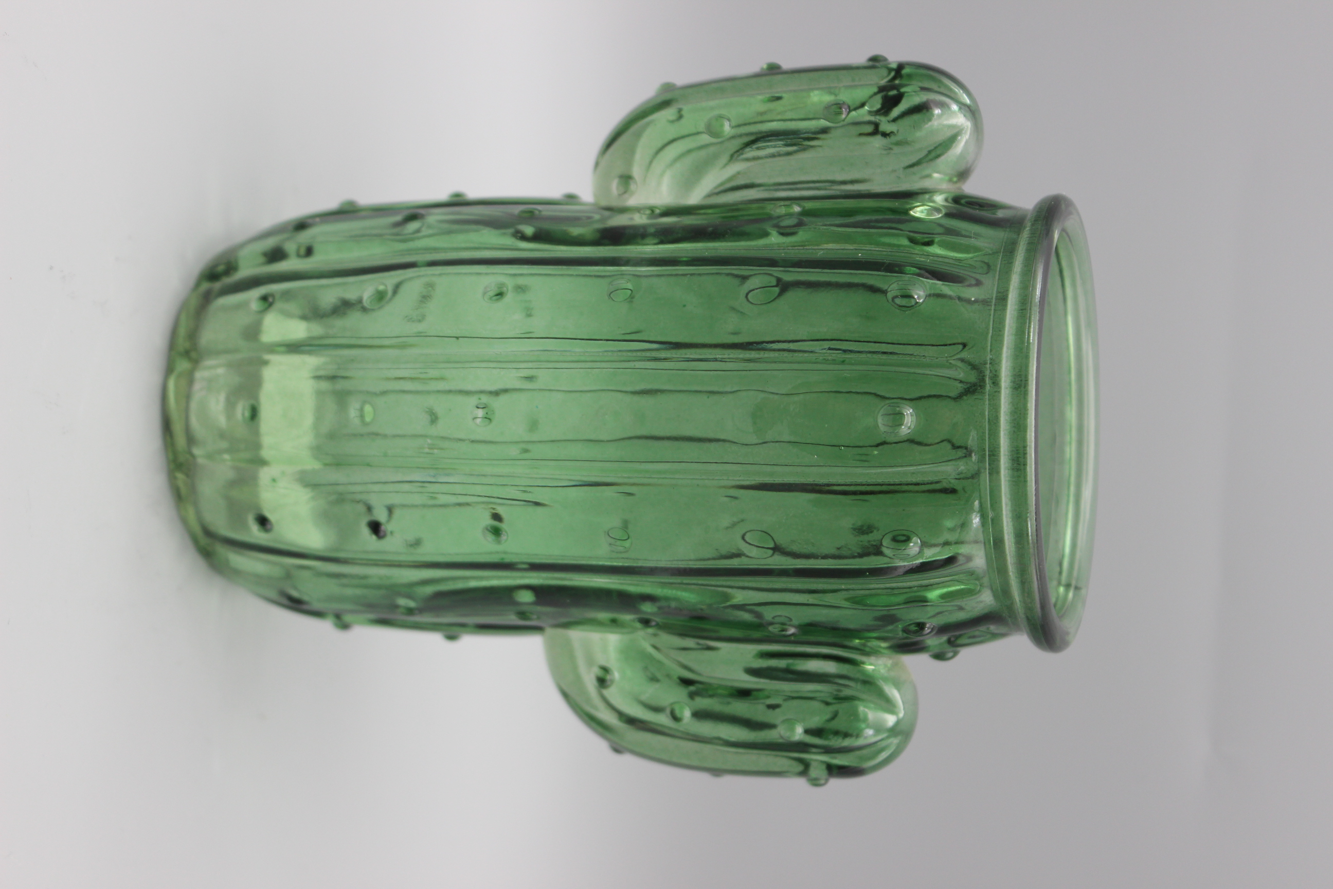 This is a uniquely designed glass jar shaped like a cactus. The mug is crafted from high - quality green - tinted glass, giving it a vibrant and refreshing appearance. Its cactus - inspired form features two "arms" that serve as handles, adding both functionality and an element of fun. The surface is textured with raised dots and ridges, mimicking the look of a real cactus, which not only enhances its aesthetic appeal but also provides a better grip.