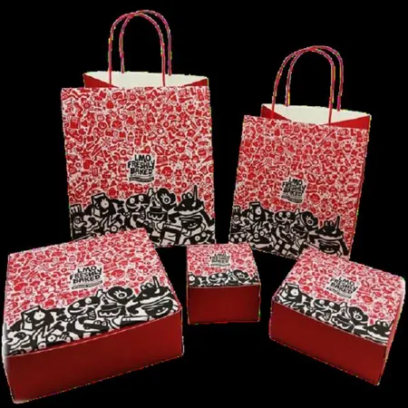 This set of gift boxes features a red background with a variety of cute patterns all over. They are vibrant and eye-catching, as if containing a whole box of creativity and surprises, exuding a trendy and elegant style. .