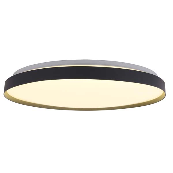 This is a round ceiling light with a minimalist overall design. There is a black annular decoration on the lamp body, and the lampshade emits soft warm white light, creating a warm lighting effect.