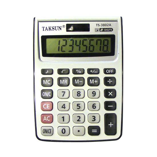 The picture shows a solar powered calculator with a large and clear display showing twelve digits. It has a back space function and large keys which are easy and comfortable to be pressed on.