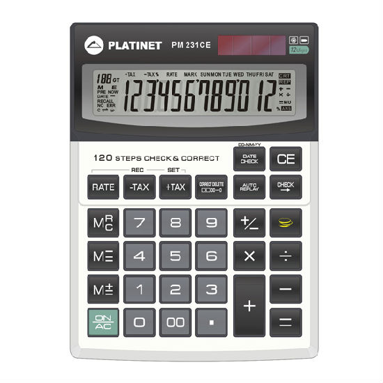 • Platinet calculator PM222TE 12D tax mar 3 lines display [41066].