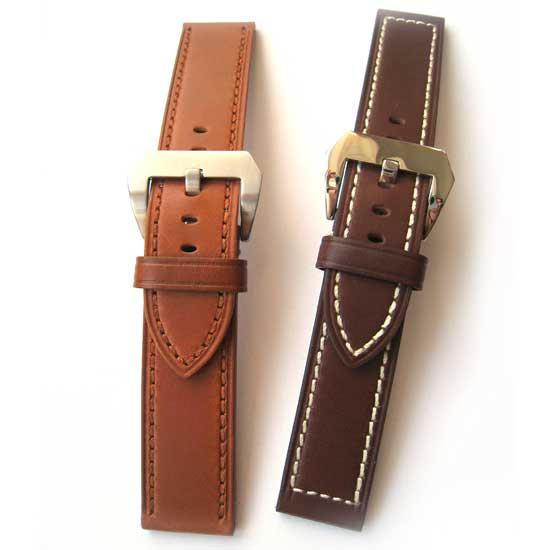 Displayed here is a watch band that is well made of high-quality calf leather. The white stitched design adds a stylish touch to the watch band. This calf leather watch band is easy to complement.