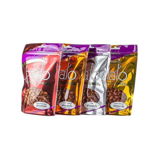 This is a line of four flavors of premium California almonds available immediately. Premium California walnuts and pistachios, dried plums, dried grapes, dried apricots, and dried pears are available at customers' request. They are finely packaged for a long shelf life.