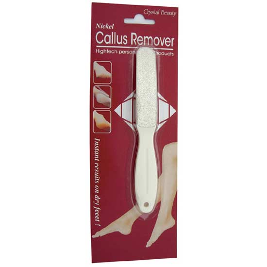 This callus remover is made of nickel and plastic. It flaunts a handy size, offering convenient storage. The convex handle allows easy holding. Remove dry and cracked skin with remarkable ease by this callus remover.