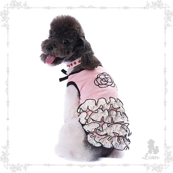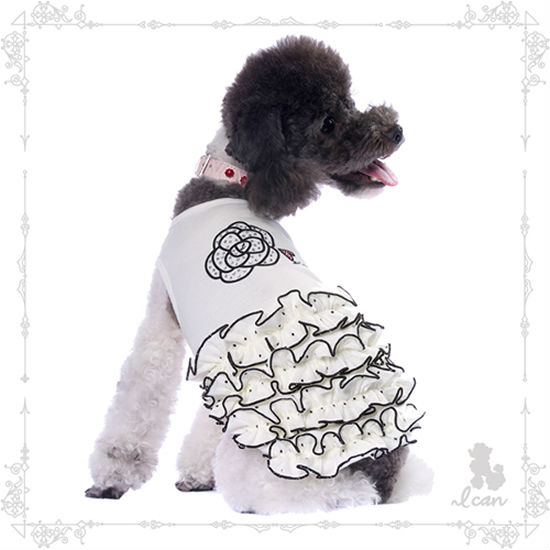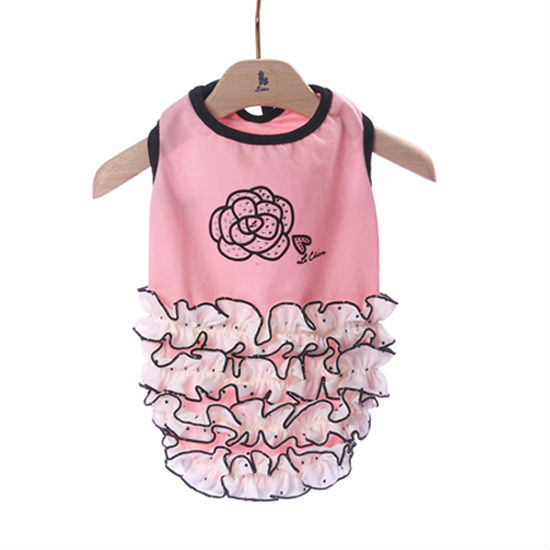 Camellia dog dress with 4-tier, polka-dot, ruffles