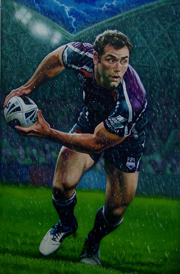 Cameron Smith is the Captain of NRL team, Melbourne Storm. Cooper has captured him at his dramatic best, weathering the rain and thunder to get the job done. This was commissioned to celebrate Smith’s illustrious career as one the stand out players of his generation.