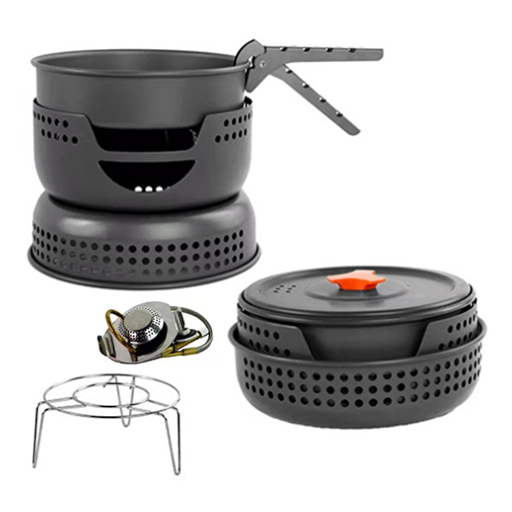 Large pot - Dia. 17 cm x H 9.5 cm; Small pot - Dia. 16 cm x H 8.5 cm; Steam rack - Dia. 17 cm x H 6.5 cm; Stove - Dia. 8.5 cm x H 8.5 cm; Windshield - Dia. 19 cm x H 8 cm; Base - Dia. 20 cm x H 6.5 cm