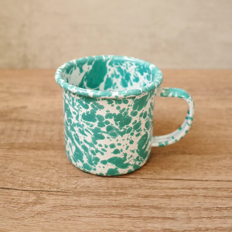 • 【CRAFTED】Fine and bright enamel coating prevent cup rusting, Rolled black rim with no burrs, Wide U-handle for grasp comfortably and hang easily, Strong construction with proper weight