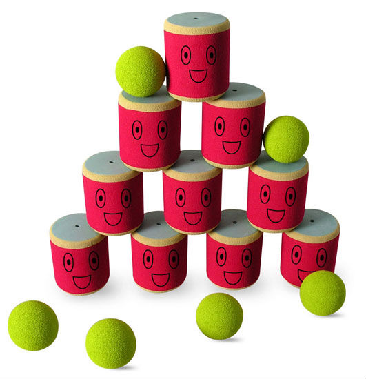 Featured is a set of can toss game with adorable 10 rubber foam cans and 6 balls. Each can accents robust and cylindrical texture, which lets you easily build a pyramid for the game. As they are made of rubber foam, they are light in weight and easy to carry.