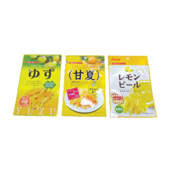Displayed is a candied peel that comes in a sealed pack for a fresh taste. Made with carefully selected high quality ingredients, this candied peel is sweet, delicious and healthy. This wonderful snack also comes in different flavors for your preference.