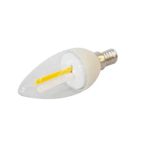 - LED candle bulb featuring a white body and a transparent diffuser.