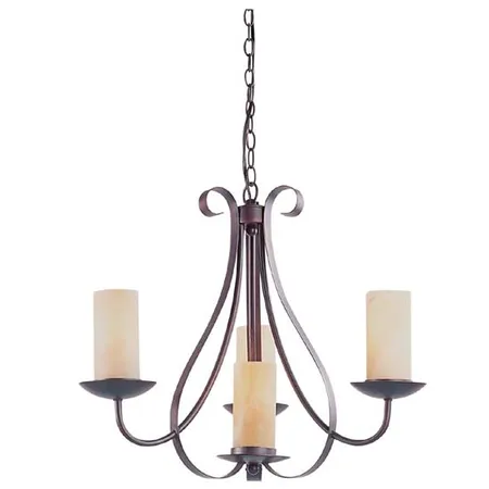 This functional chandelier features four round dishes for holding candles. The special design is finished through the vibrant but elegant swirling strips. It is an ideal lamp as well as decoration for a themed home decor.