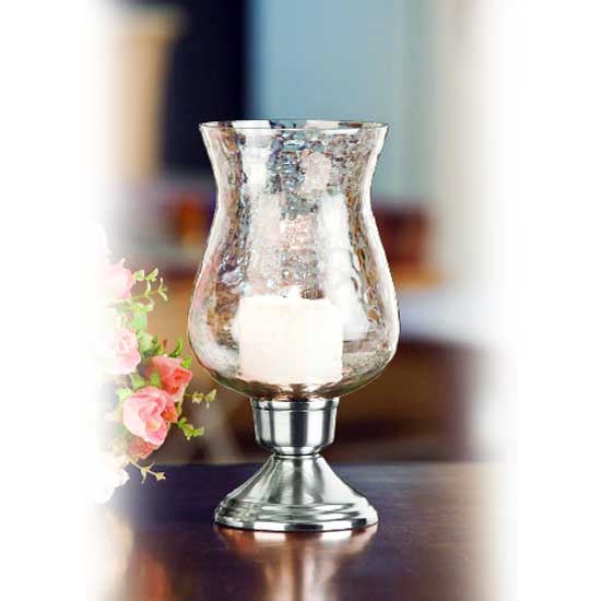 The hurricane candle holder features a transparent body matching with a silvery base for an elegant appearance. It is skillfully crafted with exquisite details for reliable quality. This unique item makes a great decorative addition to your stylish home.