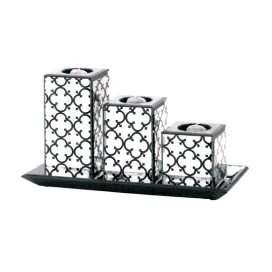 This candle holder is made of top-quality material for enhanced durability. The allover black flower patterns add a touch of style to the whole piece. This candle holder is an ideal addition to complete any home decoration.