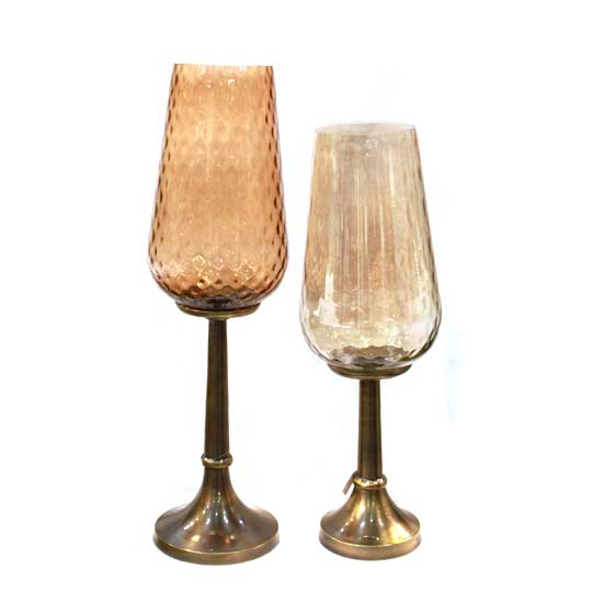 This nostalgic glass-shaped candle stand comes with a transparent brown bowl and a bronze toned pedestal. It is constructed from glass and metal for extra robustness. This big and tall candle stand fits in your indoor decoration easily.